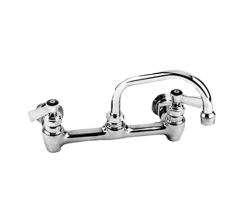 Faucet, wall mount, 8" centers, 6" spout, 1/2" NPT male inlet, 1/2" NPT male outlet, stainless steel, lead free