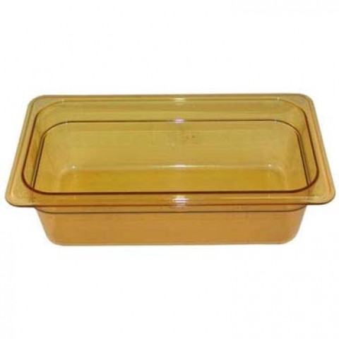 Condiment Food Pan, 1/3 size, 6-15/16" x 12-3/4" x 4", -40° to 375°F, cold, warm, hot & steam, amber, polycarbonate, replaces Cambro: 34HP (CCC item SP-323)