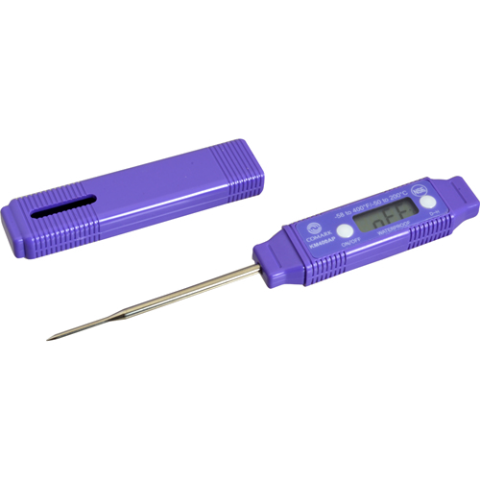 Taylor® Pocket Thermometer, digital, -40° to 400°F (-50° to 204°C) temperature range, 3" probe, 6" OA, purple, NSF