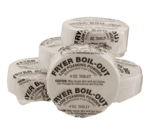 Fryer Puck™ Fryer Cleaning Tablets, 4 oz., heavy duty high-alkaline detergent formula , high soil, fat and grease tolerance, non-flammable, free of phosphates & chlorinated solvents, no toxic fumes or odors (5 per box)
