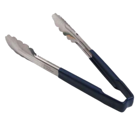 Kool-Touch® Tongs, scalloped paddle, 9-1/2", blue handle, stainless steel