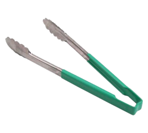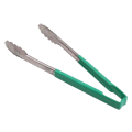 Kool-Touch® Tongs, scalloped paddle, 12", green handle, stainless steel