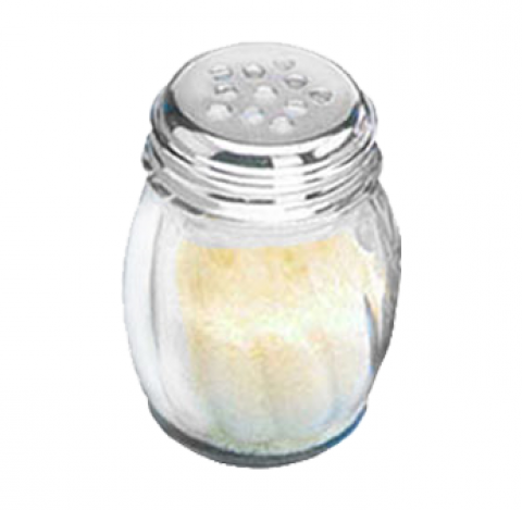 Cheese Shaker, 6 oz., 2-5/8" dia. x 3-1/2"H, swirl, stainless steel perforated top, glass, clear