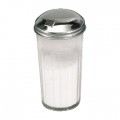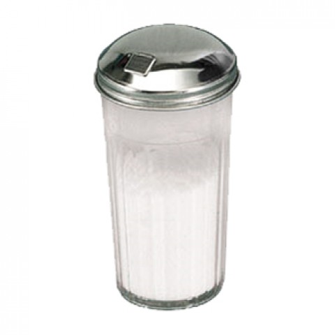 Sugar Pourer/Shaker, 12 oz., 3" dia. x 5-3/8"H, heavy-duty, stainless steel top, tapered bases, nestable, odorless, dishwasher safe, SAN-plastic, clear