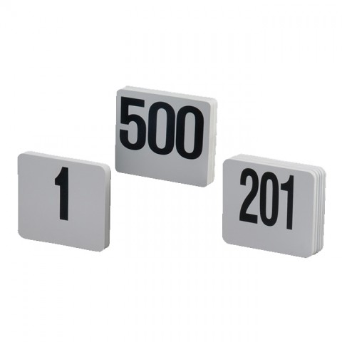 Table Numbers, numbers 101 thru 150, 4" square, white card, black numbers, printed on both sides, heavy plastic