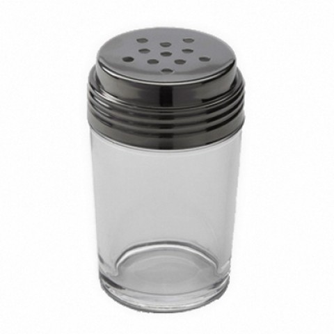 Cheese Shaker, 6 oz., 2-3/8" dia. x 4-1/2"H, perforated, contemporary, stainless steel lid, glass, clear