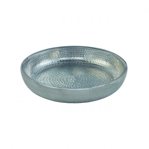 Seafood Tray, 128 oz., 14" dia. x 2-1/2"H, round, double-wall, hand-wash only, hammered aluminum, silver (hand wash only)