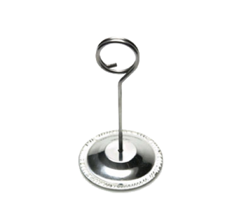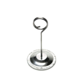 Card Holder, 2-5/8" dia. x 4"H, wire loop clip, weighted base, stainless steel, polished finish
