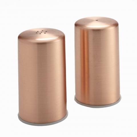 Salt & Pepper Set, 2 oz., 1-3/4" dia. x 2-3/4"H, copper, brushed finish (hand wash only)