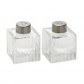 Vintage Salt & Pepper Shaker Set, 2 oz., 2"L x 2"W x 2-1/2"H, square, ribbed, stainless steel and glass