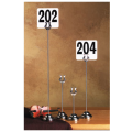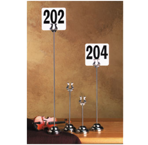 Number Stand, 2-1/4" dia. x 12"H, harp clip, round weighted base, stainless steel, chrome finish