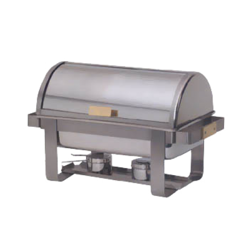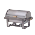 Applause™ Chafer, 8 qt., rectangular, includes: std. food pan, water pan, 2 fuel holders, 90° roll-top, satin finish & body, polished brass handles, 18/8 stainless steel