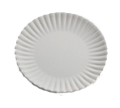 Plate, 8-7/8" dia. x 5/8"H, round, paper plate design, melamine, white