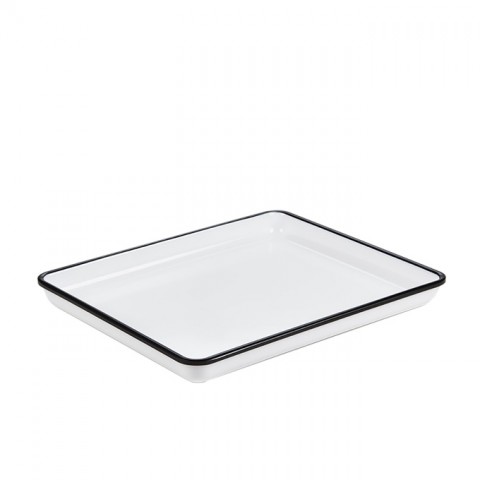 Endurance™ Platter, 12-7/8"L x 10-1/4"W x 1-1/8"H, rectangular, break-resistant, dishwasher safe, melamine, white with black rim