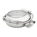 Evolution™ Chafer, 7 qt., 20-1/2"L x 20"W x 12"H, round, induction ready, slow-release glass lid, built-in spoon rest, stainless steel (For use on induction units greater than 1800)