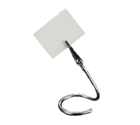 Card Holder, 4" H, alligator style clip, "C" base design, stainless steel
