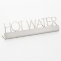 Sign, "hot water", 5"L x 3/4"W x 1-1/4"H, stainless steel