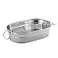 Tub, 35 oz., 8-5/8" L x 5-1/2" W x 2-1/2" H, oval, dishwasher safe, stainless steel, satin and mirror finish