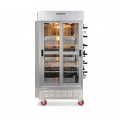 Rotisserie Oven, gas, (14) spits & (3) burners, manual controls, tempered glass sliding doors, 2-1/2" deep built-in drip pan with 1-1/4" brass drain, stainless steel interior & exterior, set of (4) casters (2 locking), 31.0kW, 105,000 BTU, cETLus, ETL-Sanitation, Made in USA