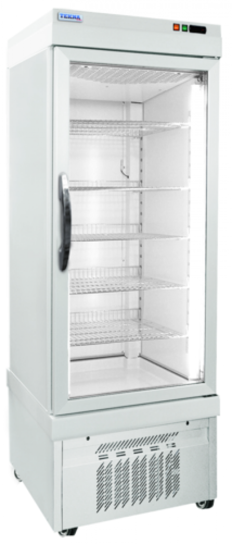Refrigerator Merchandiser, silver, glass door, one-section, 19 cu. ft. capacity, (- 5°C / +15 °C), 67 x 64 x 193 cm, LED lights, 5 shelves, Internal pre coated steel white, external oxidized aluminum, 110v/60/1-ph, 350 watt, noise