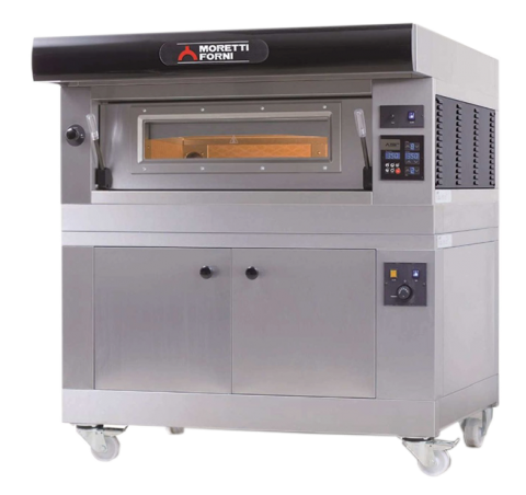 Moretti Forni Pizza Oven, deck-type, electric, (1) 26"W x 41"D x 7"H deck, (6) 12" or (2) 18" pizza capacity, (20) customizable programs, 840°F max operating temperature, timer, halogen lighting, (1) stainless steel bottom-hinged door, refractory brick baking chamber (entire camera), stainless steel construction, 7.7kW, CE, ETL, ETL-Sanitation, Made in Italy (MPN AMA0A01S)