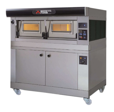 Moretti Forni Pizza Oven, electric, deck-type, (1) 49"W x 34"D x 7"H deck, (8) 12" or (4) 18" pizza capacity, (20) customizable programs, 840°F max operating temperature, timer,(1) stainless steel bottom-hinged double door, halogen lighting, refractory brick baking surface, stainless steel external structure, 10.1kW, CE, ETL, ETL-Sanitation, Made in Italy (MPN P120B01S)