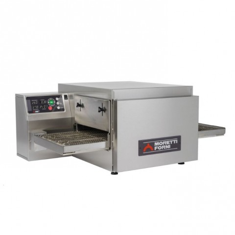 Moretti Forni Electric Conveyor Pizza Oven Ventless, 24" x 16" x 3" chamber, 16"W belt, (1) deck, (25) 13" pizzas/hour or (20) 16" pizza/hour, 30 sec to 20 minutes belt speed control, 608°F max operating temperature, (20) customizable programs, stainless steel construction, 6.9kW, cETLus, ETL-Sanitation, Made in Italy (per deck)