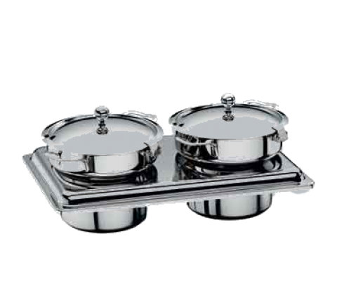 Soup Station, GN 1/1, quality II, includes: (1) 20-3/4" x 12-3/4" insert plate & (2) 157-1/2 oz. each soup tureens, lid, fits GN 1/1 chafing dish, 18/10 stainless steel, by WMF