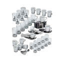 Allround Coffee Set, includes: (12) 7-1/2" x 4-3/4" 18/10 stainless steel serving trays, (6) 11.2 oz. large printed glasses, (6) 11.2 oz. large unprinted glasses, (12) 3.2 oz. small glasses, (6) 8.45 oz. medium porcelain cups, (6) 3.2 oz. small porcelain cups, (6) large 18/10 stainless steel rings, (12) small 18/10 stainless steel rings, (6) large 18/10 stainless steel handles, (6) medium 18/10 stainless steel rings, (6) small 18/10 stainless steel handles, (6) 6-1/4" 18/10 stainless steel mug spoons, (6) 5-1/4" 18/10 stainless steel tea/coffee spoons & (6) 4-14" 18/10 stainless steel demitasse spoons, CoffeeCulture by WMF
