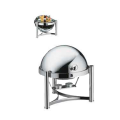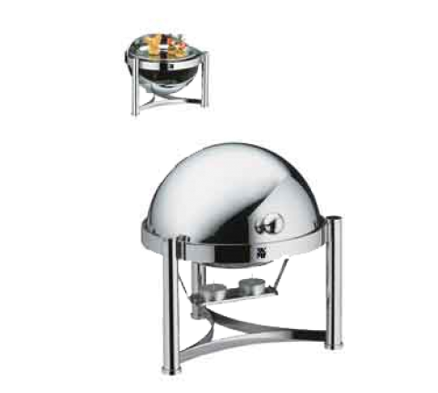 Portions Chafing Dish, 10-1/4" dia. x 11-1/2"H, small, full roll top, knob handle, round feet, fits for 9" dia. porcelain plates, heated by 2 tea lights, 18/10 stainless steel, Standard by WMF (insert & tea lights not included)