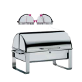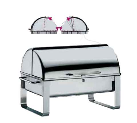 Chafing Dish, GN 1/1, 24-1/2" x 13-3/4" x 14-1/4"H, rectangular, half roll top cover, fits inserts up to 4" deep, electric & sterno heating, 18/10 stainless steel, satin finish, Economy by WMF (insert not included)