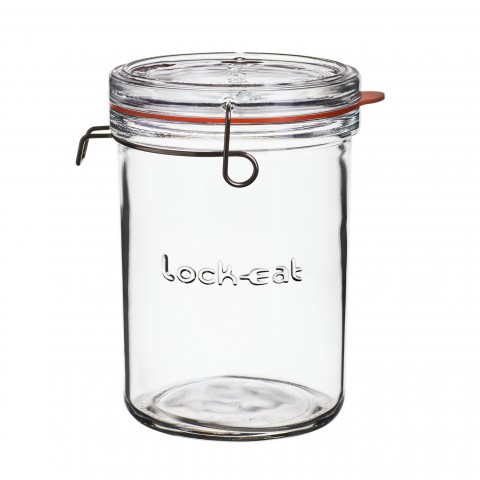Food Jar, 34 oz., 4-3/4" dia. x 6-3/4"H, round, with lock, glass, clear, Lock Eat by Luigi Bormioli
