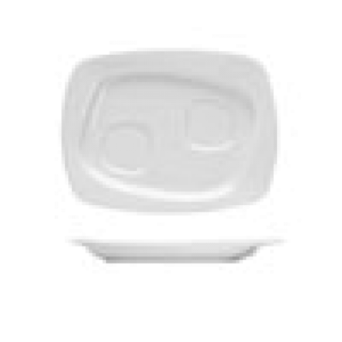 Saucer, 7.2", rectangular, with 2 wells, porcelain, white, Solutions by Bauscher (Formerly T657109)