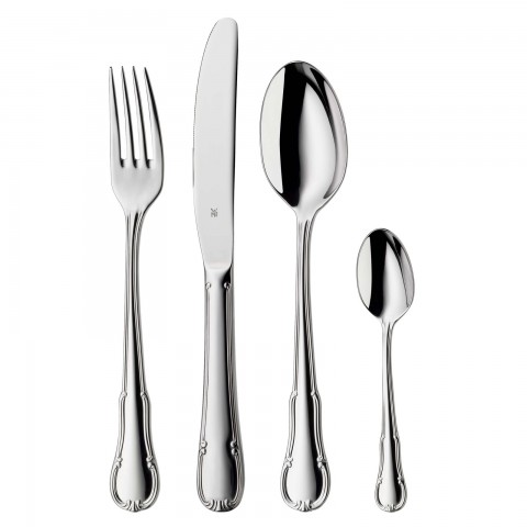 Flatware Place Set Kit, 5-piece, includes: (1) dessert spoon (54.3004.6040), (1) table fork (54.3002.6040), (1) table knife (54.3003.6049), (1) dessert fork (54.3005.6040), (1) coffee spoon (54.3010.6040), & velvet case (79.0001.0420), 18/10 stainless steel, Barock by WMF (no charge)