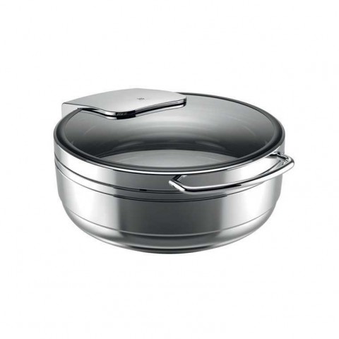 Induction Chafing Dish, 15-1/4" dia. x 7-1/2"H, bow handle, glass lid, removable brake, fits inserts to 4" deep, electric & sterno heat, 18/10 stainless steel, Basic, Hot & Fresh by WMF
