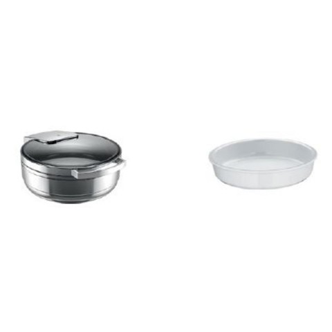 Chafing Dish Promo Kit, includes: (1) Manhattan round induction chafing dish (55.0020.6040) & (3) 106 oz., 2-1/8" deep porcelain inserts (60.8874.3000), Manhattan, Hot & Fresh by WMF