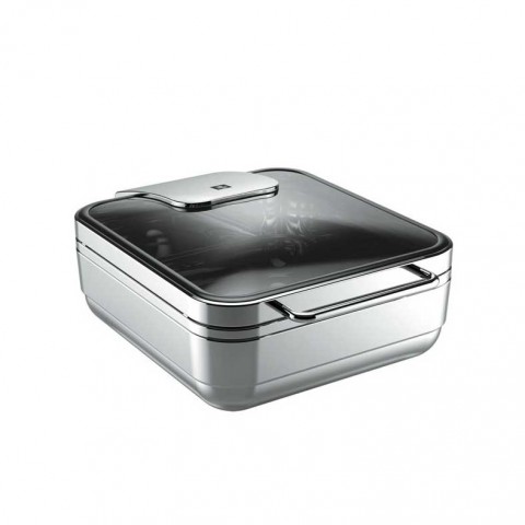 Induction Plus Chafing Dish, 2/3 GN, 17-3/4"L x 14-1/2"W x 7-1/2"H, square, heat-resistant bow handle, brake removable/electrically/sterno heating possible, includes: glass lid, 18/10 stainless steel, Excellent by Hepp