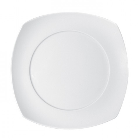 Plate, 9-3/4", square, flat, coupe, with round center well, porcelain, Options by Bauscher