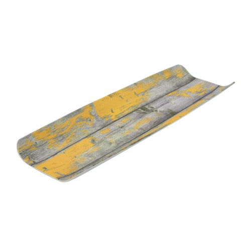 Tura Collection Serving Tray, GN 2/4 size, 20-3/4"L x 6-1/2"W x 1-1/2"H, rectangular, curved, anti-slip silicone feet, chip and stain resistant, dishwasher safe, melamine, faux wood rustic yellow, Dalebrook