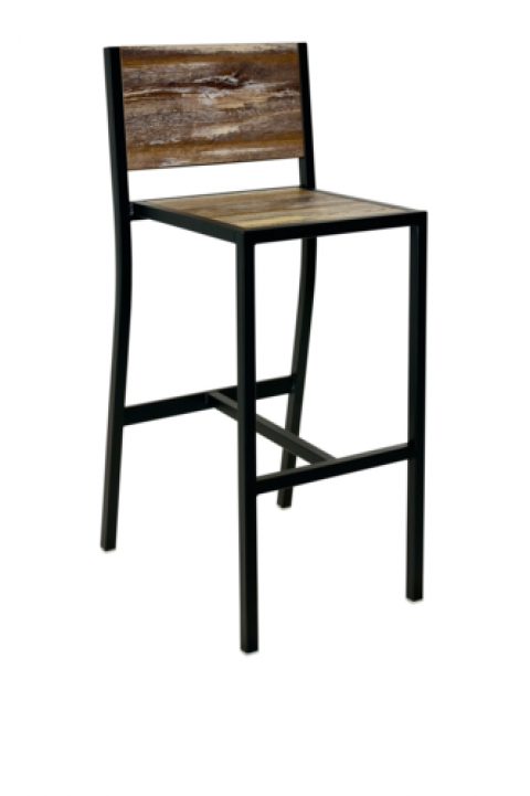 Chester Barstool, farm house relic seat & back, steel frame, sand black