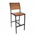 Largo Barstool, synthetic teak back & seat, outdoor/indoor, footrest, powder coated aluminum frame with black finish, KD