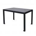 Surf Inlay Table, 32” x 48”, dining height, rectangular, (4) leg, bolt down, HPL coating, Pietro black marble top, black frame (umbrella hole optional)