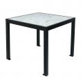 Surf Inlay Table, 36” x 36”, dining height, square, (4) leg, bolt down, HPL coating, Carrara white marble top, black frame (umbrella hole optional)