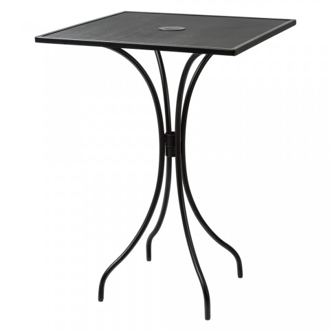 Barnegat Table, 36" x 36", square, bar height, micro-mesh steel top, with umbrella hole, outdoor/indoor, steel base, e-coated, powder coated, black finish