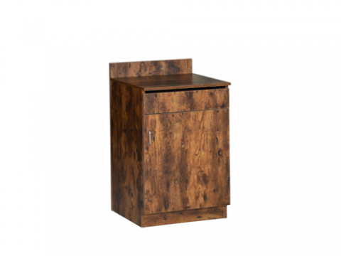 Relic Waitress Station, single door, 24" W x 24-3/8" D x 40" H overall, with (1) drawer, (1) hinged access door, (1) inside shelf, MDF core, melamine surface with PVC self-edge, ships KD, vintage walnut