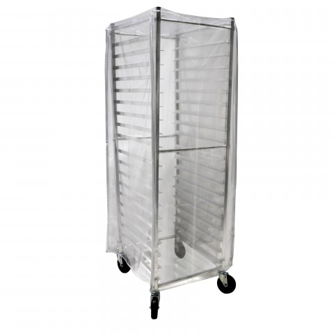 Bun Pan Rack Cover, heavy duty clear plastic, 28"W x 23"D x 61"H, (3) reinforced zippers