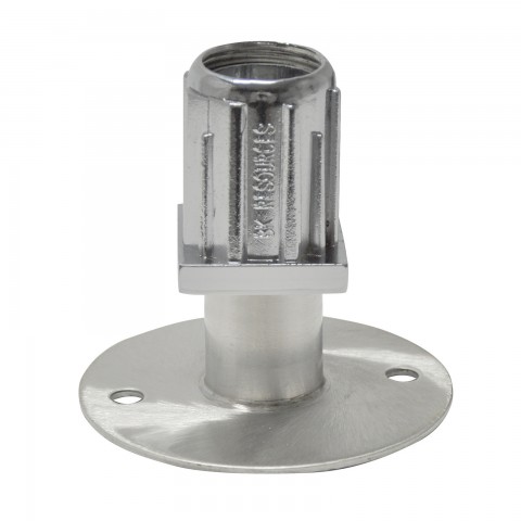 Flange Foot with holes, stainless steel over white metal, fits 1-1/2" OD square tubing, adjustable, 2,000 lb. capacity, designed for 16 gauge tubing, NSF (price per each, 25 per case)