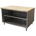 Chef Table, cabinet base with open front, 60"W x 36"D x 34-3/4"H overall size, 1-3/4" thick hard maple flat top with penetrating oil finish, 18/304 stainless steel body, enclosed with stainless steel panels on sides and rear, 6” stainless steel legs with 1" height adjustment, stainless steel feet, NSF