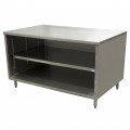 Chef Table, cabinet base with open front, 18"W x 30"D x 34-3/4"H overall size, 14/304 stainless steel top, 18/304 stainless steel body, 6” stainless steel legs with 1" height adjustment, stainless steel feet, NSF