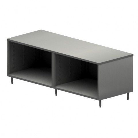 Chef Table, cabinet base with open front, 96"W x 30"D x 34-3/4"H overall size, 14/304 stainless steel top, 18/304 stainless steel body, center mullion, 6” stainless steel legs with 1" height adjustment, stainless steel feet, NSF